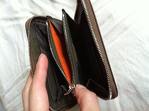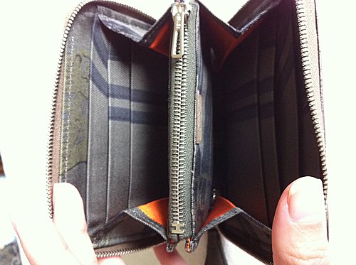 只見他迅速的回來,手中拿著的是大象灰絲巾短夾~~